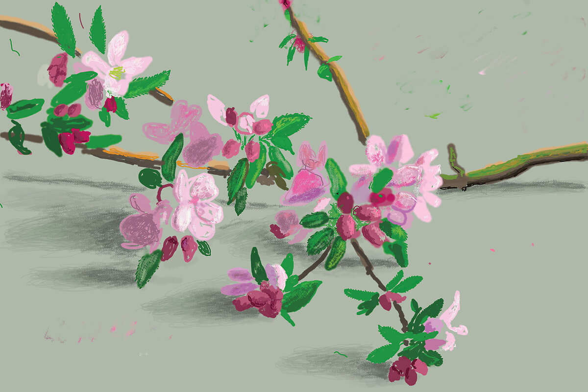 In 2020, during the pandemic lockdowns, Hockney produced a series of 220 iPad paintings of spring as it unfolded in Normandy. These were published as the book “220 for 2020,” with the uplifting reminder: “Do remember they can’t cancel the spring.” New iPad drawing apps and Photoshop have also enabled him, with the help of his partner, Jean-Pierre Gonçalves de Lima, and his assistant, Jonathan Wilkinson, to produce “A Year in Normandy” (2020), a monumental frieze inspired by the medieval Bayeux Tapestry, a 230-foot-long depiction of the Norman conquest of England.