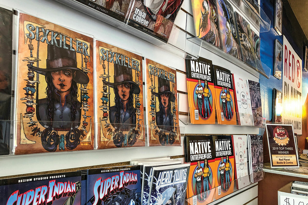 In 2017, he and Aaron Cuffee III opened Red Planet Books & Comics in Albuquerque, which sells not only comic books but also graphic novels and children’s books that are written by, illustrated by, or that feature Native Americans. Dr. Francis says it’s the only Native comic book shop in the world and one of only a handful of Native American bookstores in the United States. He has plans to expand the shop.