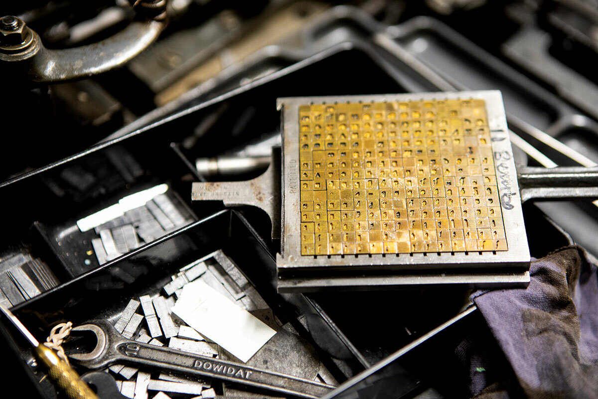 Mr. Wolfe’s letterpress and hot-metal casting machines, about 10 in all, fill his spacious shop – a former bakery. Despite their age and frequent use, the devices appear impeccably cared for. (Some are undergoing renovations off-site.)
