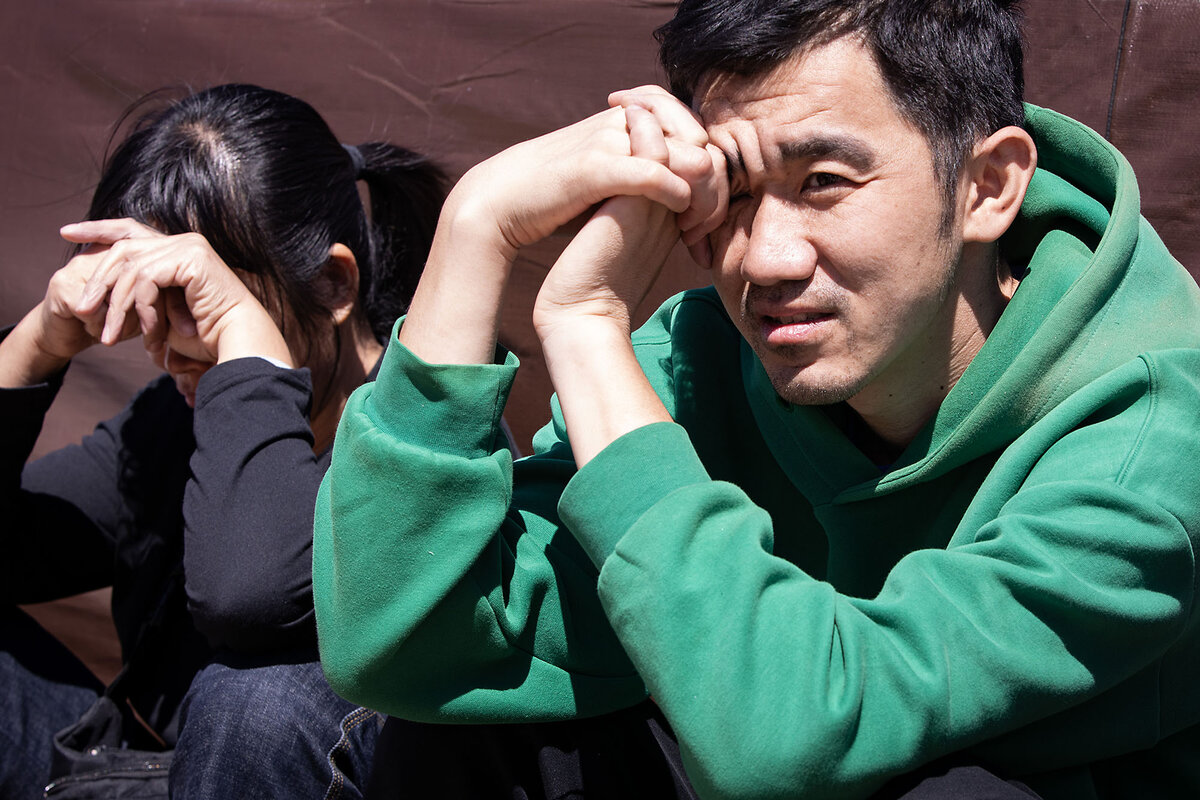 A weary-looking man in a green hoodie, Mr. Fan, from northeast China, is relieved to be in the U.S. after a 60-day journey that started in Thailand and included being robbed along the way. He renovates windows and doors for a living: “If it were good in China, I wouldn’t have come,” he says.