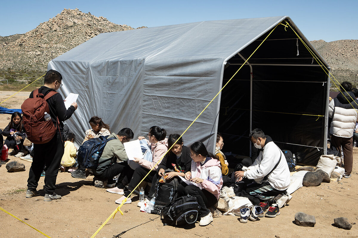 They crossed from Mexico, over a mountain where there is no fence. But you won’t hear a word of Spanish from this group. Almost all of them speak Chinese.