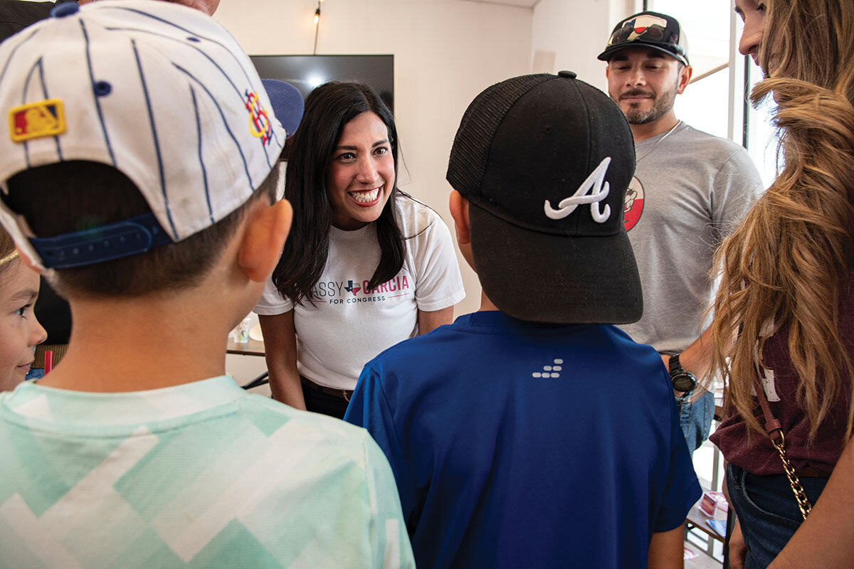 Bible study has ended at Rep. Mayra Flores’ campaign headquarters, and volunteers are passing around steaming plates of chicken tamales. One staffer excitedly announces an all-female “Block Walk,” where participants will wear red high heels during an upcoming door-knocking effort.