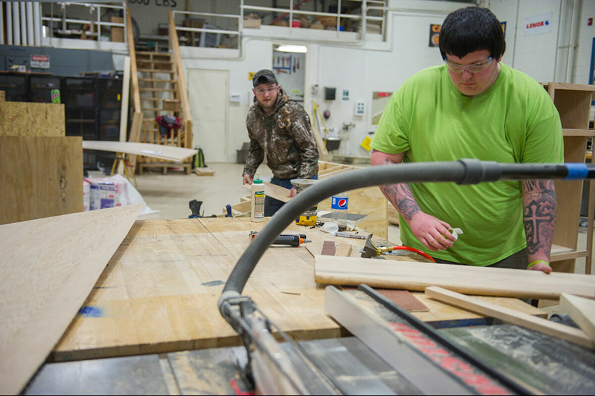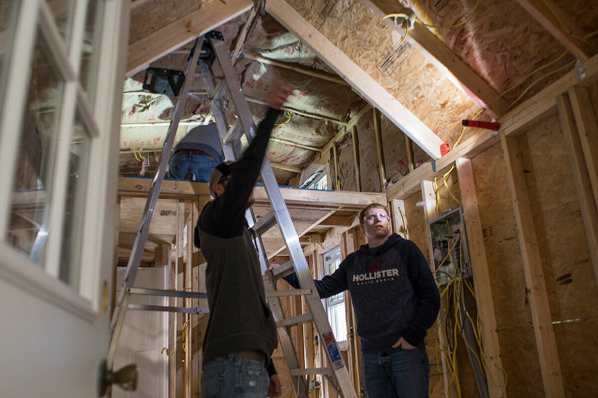 On this late-winter day, as a teacher at a vocational school, Martin is guiding his students toward the finish line in a “tiny house” competition. The contest pits them against students from two other nearby towns to see whose house, when sold at an auction, can net the most money for their school. But the real idea is not just to raise money. It’s to raise aspirations.