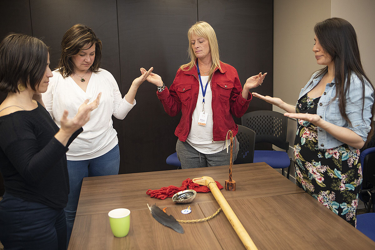 She’s part of a burgeoning movement of doulas who are reclaiming traditional birth practices. On a recent evening at the Fraser Region Aboriginal Friendship Centre Association in Surrey in Greater Vancouver, coordinator Corina Bye starts a meeting among doulas. They call themselves the Indigenous Birth Keepers, and they begin with a smudging ceremony using burning sage, tobacco, sweet grass, and cedar and a prayer.