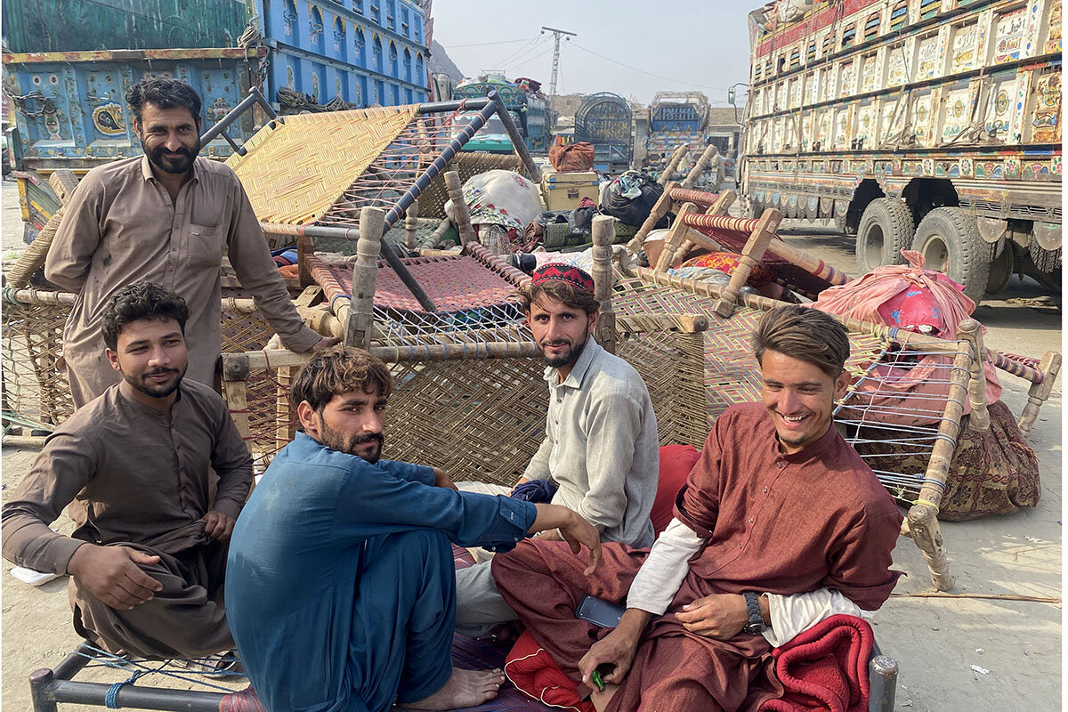 Among the Afghans apprehended by Pakistani police is Naimatullah, who did not want to give his surname. Sitting on a charpoy near the Torkham border, surrounded by all his worldly possessions, he recounts how he was taken to the border with a police escort. “The police came and dragged us out of our houses,” he says, adding that as “poor people” from Afghanistan – a country that has been riven with conflict for the last 50 years – having their lives uprooted wasn’t such a shock. “We have been living as vagabonds for a really long time,” he says.