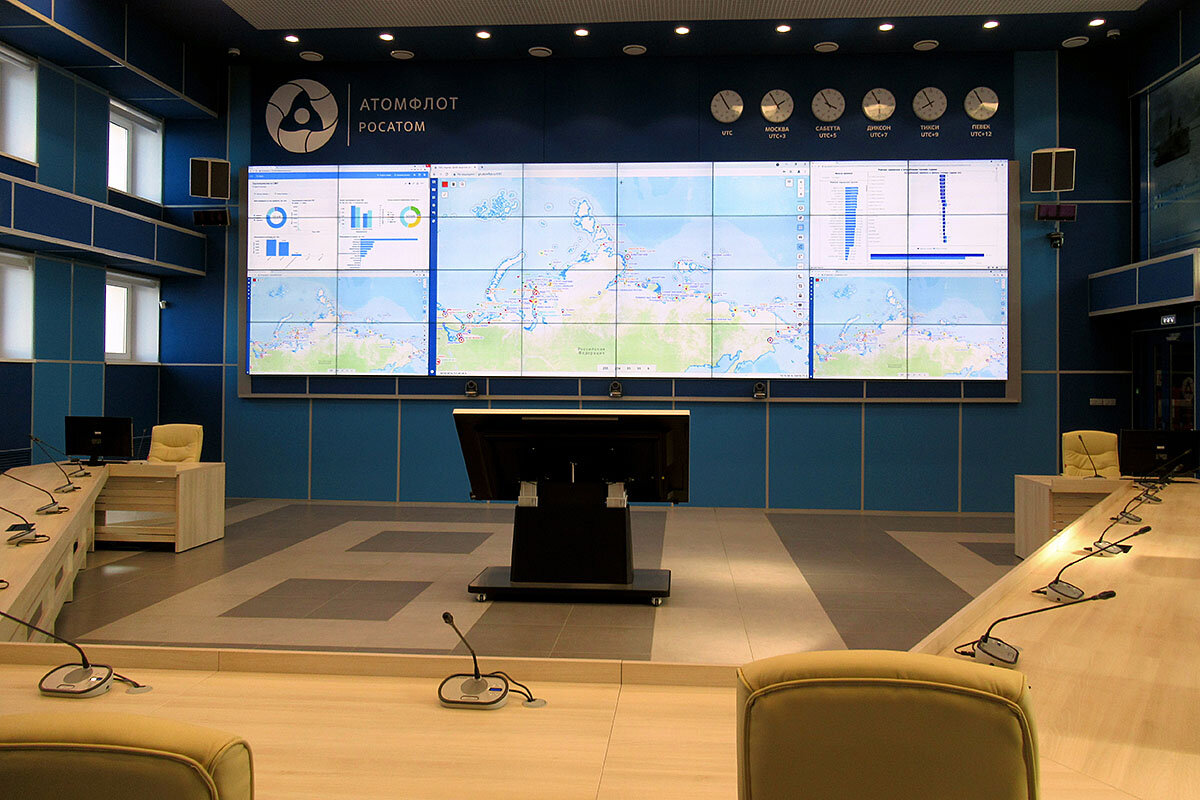 In the Murmansk headquarters of Atomflot, a vast control room houses a giant electronic map showing the location of each ship in the entire Northeast Passage along with changing ice and weather conditions. They expect it to be a busy place in future. Russian President Vladimir Putin told a recent economic forum that 33 million tons of cargo transited the passage in 2020, and that amount is expected to rise to 80 million tons by 2024.