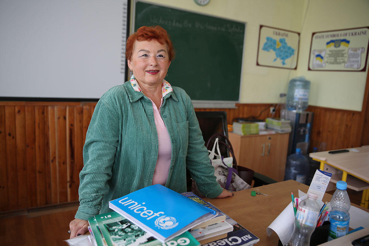 “We all want to be in the classroom,” says Lydia Rusan, an English teacher who gave up refugee status and village life in Switzerland to return to Irpin. “All the children want to be with their classmates. They don’t want to study online because they miss each other. The most important thing for them is to be together, even if it is a difficult time.”