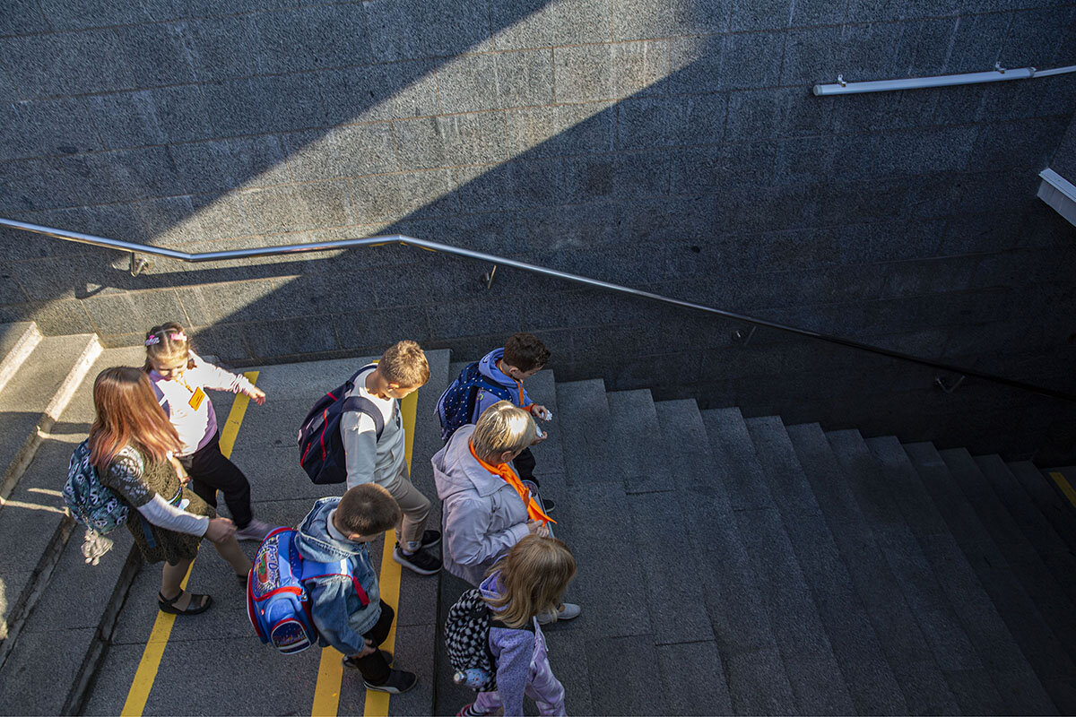 “We’ve really tried hard to make things as cozy and comfortable for the children – and we’ve taken all the safety precautions,” says Victoria Kuznetsova, the metro station supervisor who has added school traffic and safety to her list of responsibilities. Private security guards help guard the space and keep potentially unsavory characters at bay.
