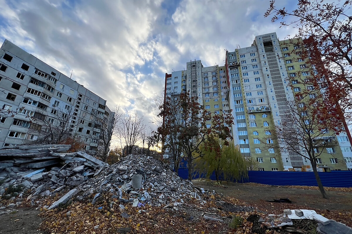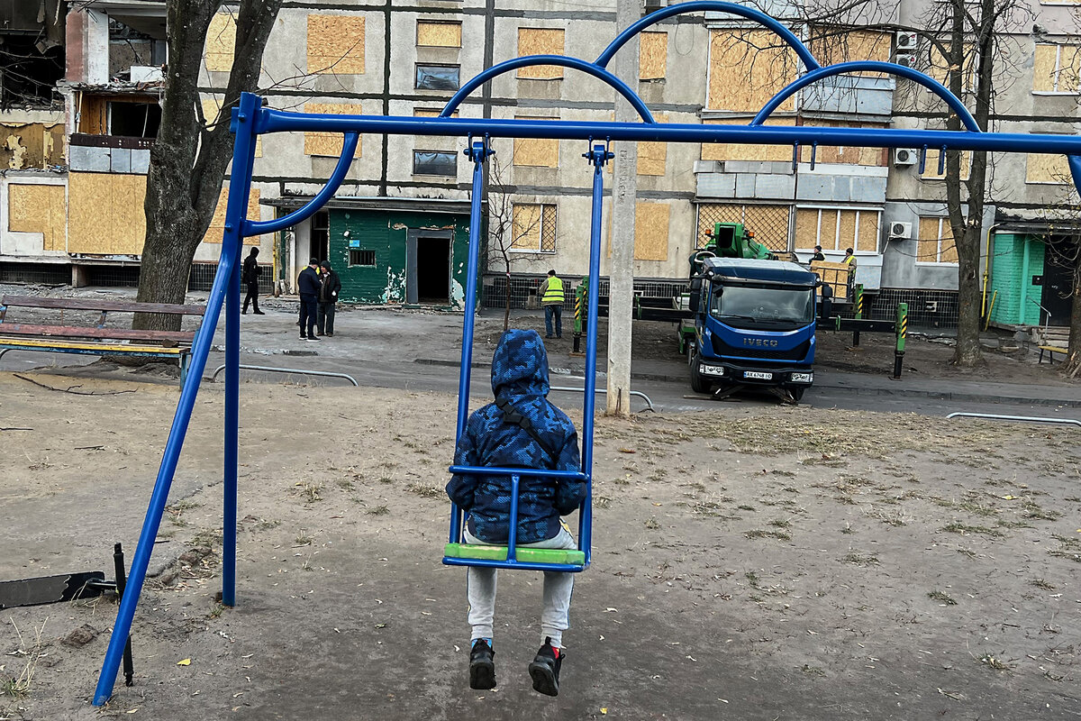Angelika, a resident of the housing estate in Kharkiv’s Soviet-era Saltivka suburb, who withheld her last name, agrees with the mayor. She points to a playground. There, a boy sits alone on a swing, staring blankly at the gaping wound in the building in front of him.