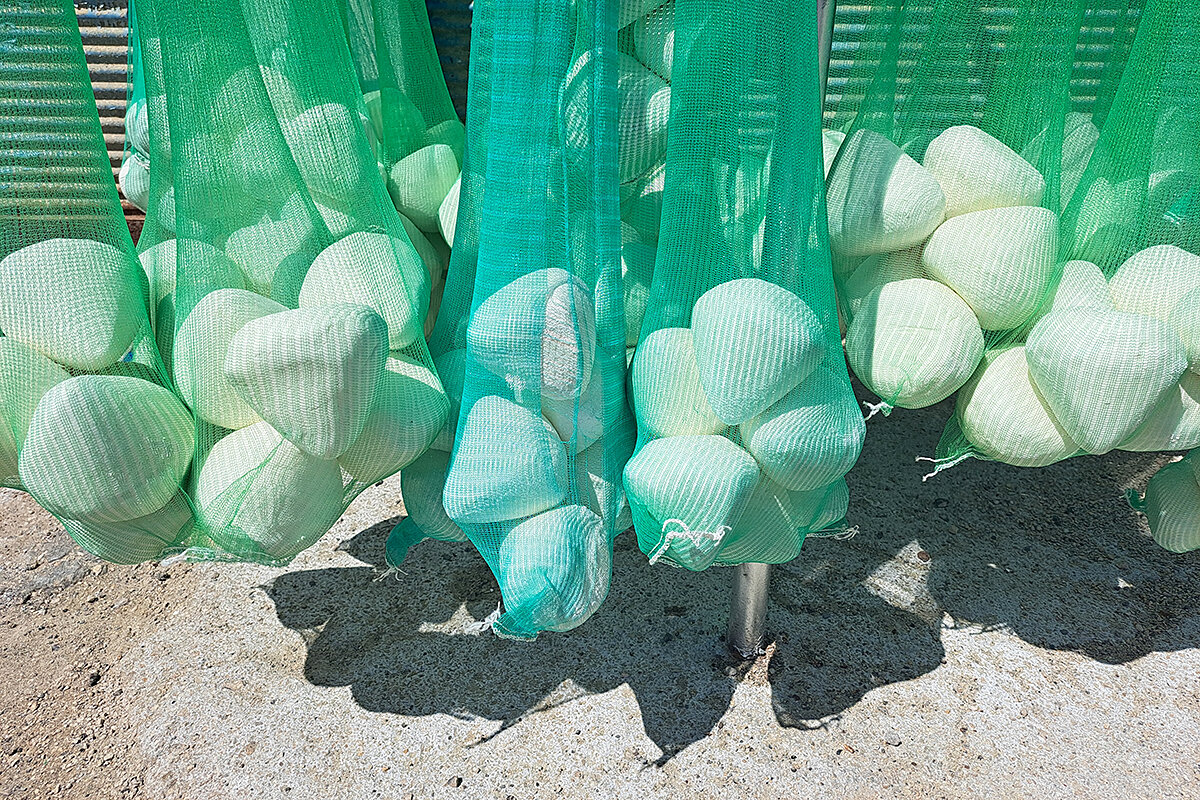 Sitting around a giant tray of strained and compressed yogurt, each woman scoops a handful and then starts to clap, slap, shape, and toss the product into fist-size balls to be dried and sold.