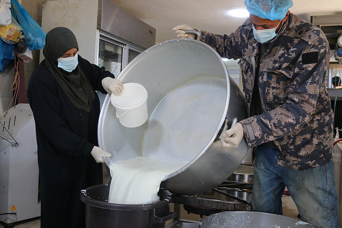 “Milk season means nonstop work for the whole family until June,” Hossam Malahmeh says as his wife readies a large mixer. “But all of Jordan is counting on us.”