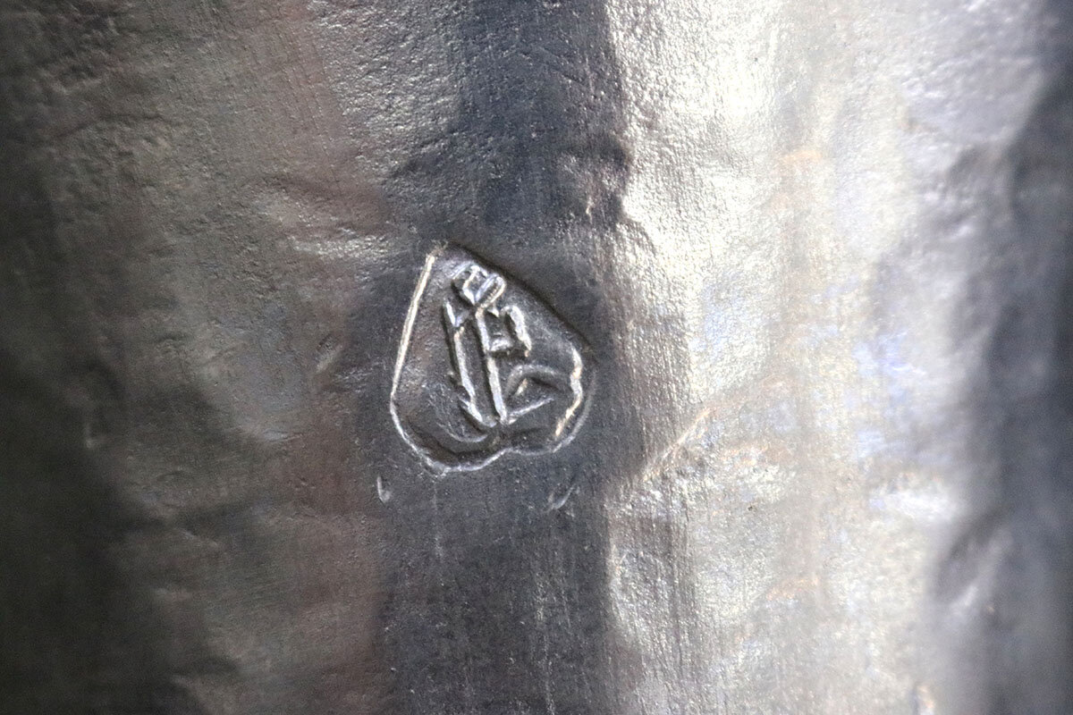 He went heavy on the decor, engraving rows of intricate checkered triangles and adding solid copper symbols: cardamom pods, cloves, and a long vertical coffee bean below the spout – all key ingredients of Arabian coffee.