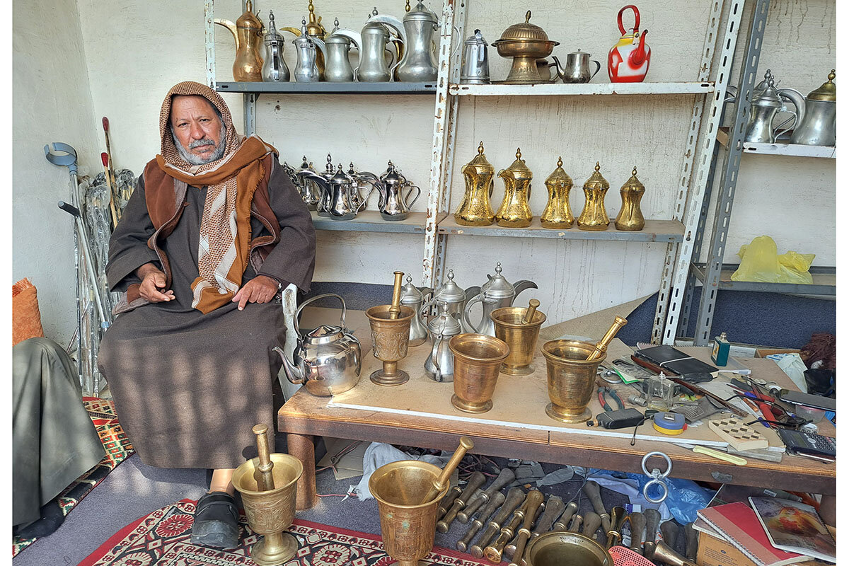 While some rummage for hidden gems, well-heeled customers head straight to the Hail National Dallal Workshop, owned by Ibrahim Radini, for a bespoke handmade coffeepot.
