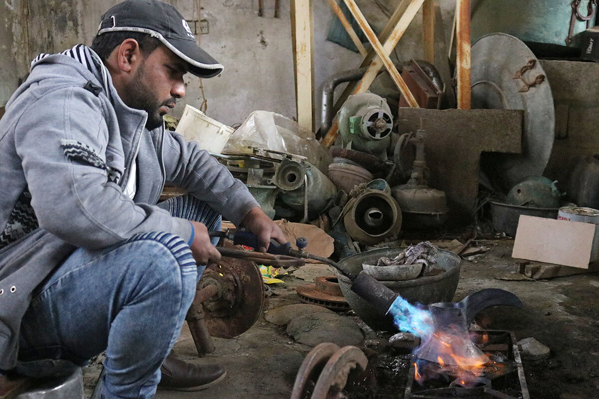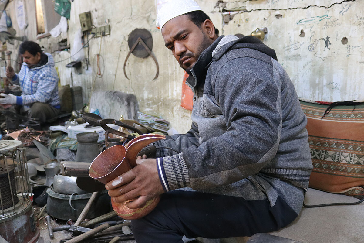 Most of Iraq’s artisan coppersmiths gave up the trade over three decades of sanctions and war. The violence of the Syrian civil war destroyed Aleppo’s historic Al-Madina Souk and scattered most of the remaining Syrian coppersmiths there.