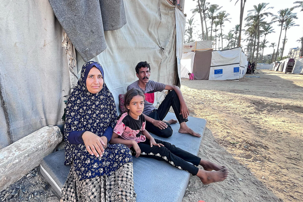 With at least 70% of buildings in Gaza damaged or destroyed, most people now live in tents, or the ruins of their homes. But Ms. Amra and her children don’t even have the supplies to build a shelter, and so they sleep outside. They also have not had a single proper meal since they fled. “We fill our stomachs with salt water, just to feel something inside,” she says.